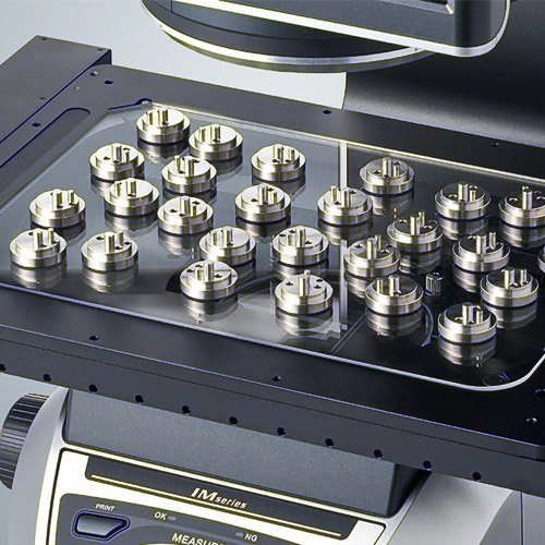 Digital measurement system IM-8030T is able to display in high resolution and it has three times higher detection performance than other conventional systems. Due to 20 megapixel CMOS sensor and a new algorithm that enables stable edge detection, it is possible to measure up to 300 points on 100 parts in a few seconds with high accuracy. Newly developed rotational unit can also rotate objects of various dimensions and shapes and to keep them in horizontal position, which allows 360° measurement of various surfaces simultaneously.