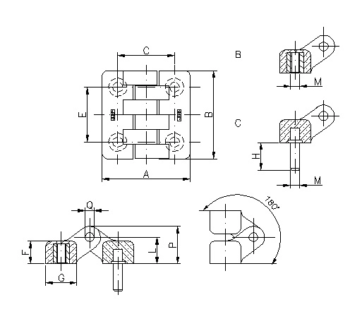 | Product name | Product code | Screw length H (mm) | Length B (mm) | Height P (mm) | Length A (mm) | Pitch E (mm) | Width G (mm) | Height L (mm) | Pitch C (mm) | Height F (mm) | Thread M | Diameter Q (mm) | Quantity |